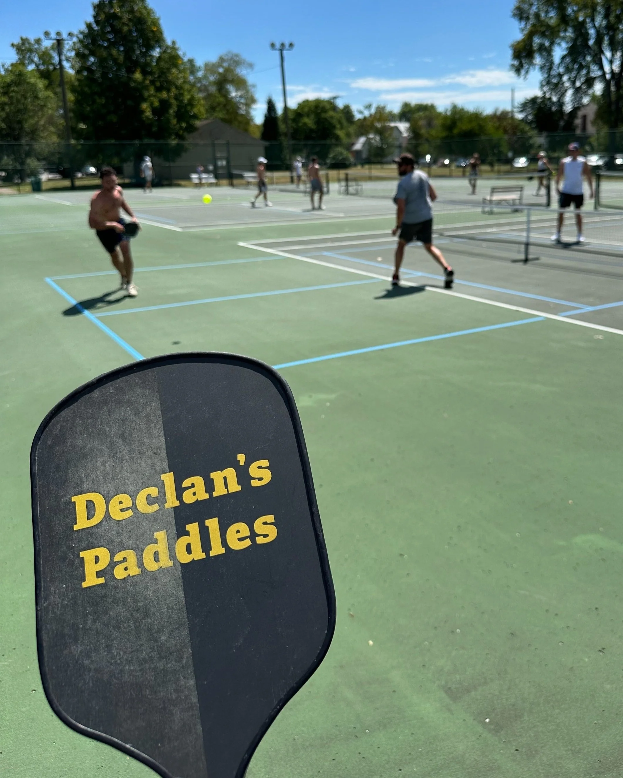 I’m Declan. Author of this blurb, creator of this website, and the hands behind each handmade pickleball paddle. I made my first paddle as part of my capstone project while attending trade school in Newport, RI. I found the process of laying out the carbon fiber, infusing it with the optimal ratio of resin, and then tweaking everything a hundred times to be an educational and rewarding experience. When I finished school and witnessed the explosive popularity of pickleball, I decided to continue the pursuit of paddle perfection by fine tuning my product and starting Declan’s Paddles.
